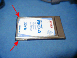 |  前述のようにPCカードのシールを剥がすことは良くなさそうなので、PCカードを加工して滑り止めの溝を付けることにしました。 左写真の矢印の部分がイジェクトボタンを押したときにPCカードがスロットから出る部分なので、この部分を加工することにします。