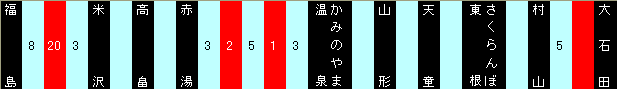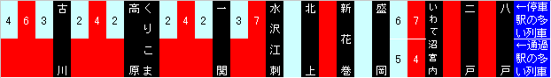 | 東北新幹線(上:停車駅の多い列車 下:通過駅の多い列車)2003.11.1更新 | |||