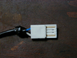 | 完成したUSB充電アダプターです。USBコネクターの金属部分がむき出しで見た目はイマイチですが、モバイルグッズとして持ち歩く際の収納を考えると厚さは少しでも薄いほうが有利なのです。 |